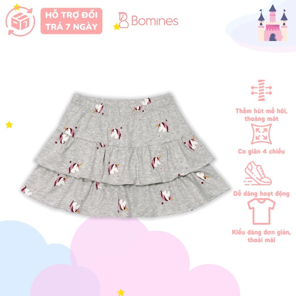 Chân váy 2 tầng nhiều họa tiết xinh xắn, chất liệu thun cotton 100% thoáng mát, thấm hút mồ hôi cực tốt. Bên trong có chip đùi kín đáo cho bé thoải mái vận động.