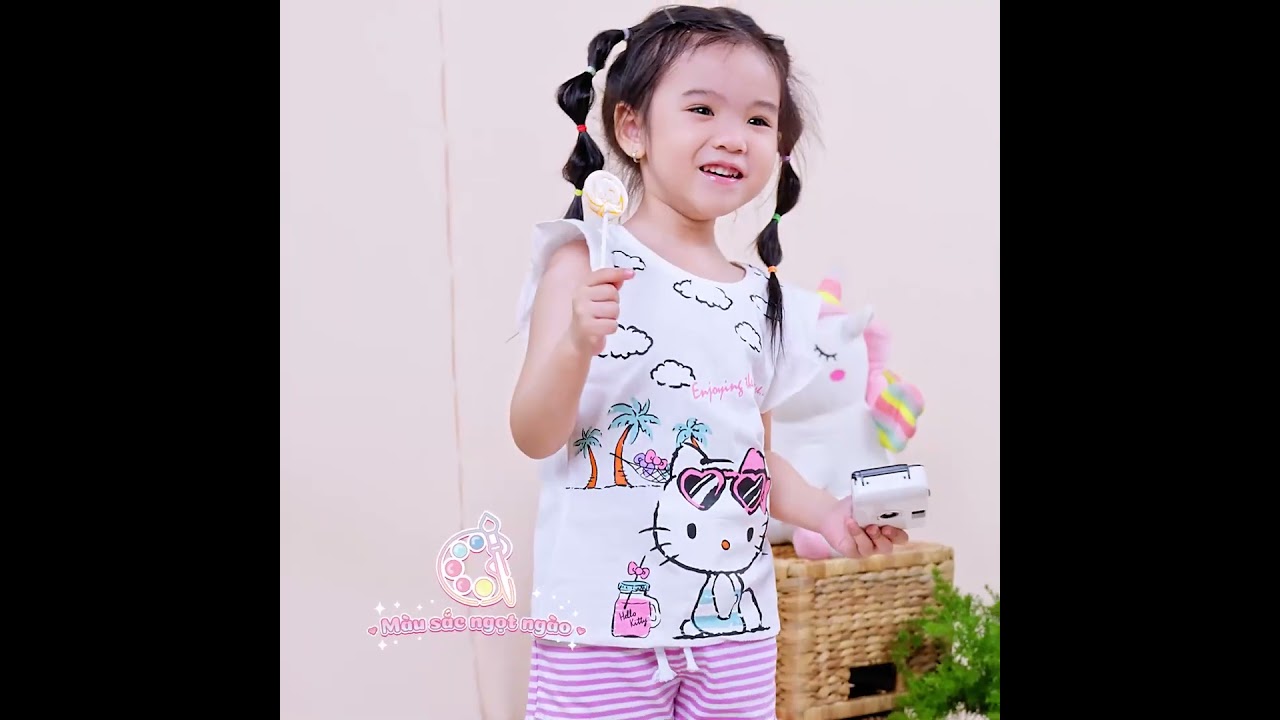 Đồ bộ bé gái mặc nhà họa tiết hình Hello Kitty dễ thương, chất vải thun cotton 100% co giãn 4 chiều, thấm hút mồ hôi tốt giúp bé thoải mái vui chơi suốt ngày dài mà không lo oi bức khó chịu.