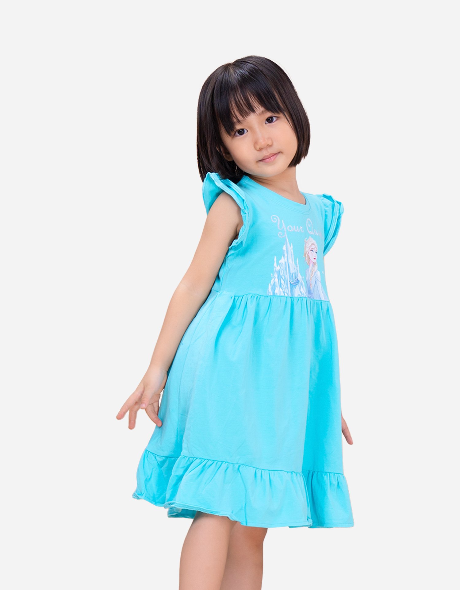 Váy bé gái công chúa Elsa, đầm dáng babydoll xinh xắn phối kèm tay cánh tiên điệu đà.