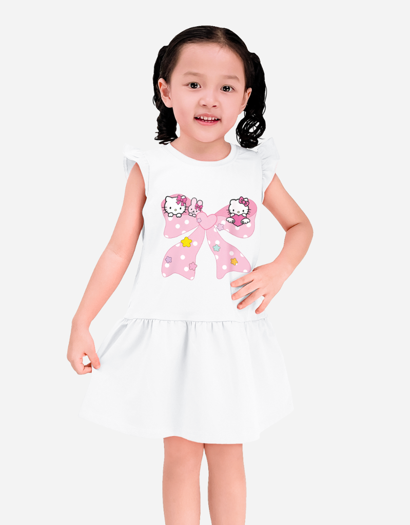 😘 🍩 Váy bé gái họa tiết Hello Kitty màu sắc tươi tắn giúp bé nổi bật, tự tin hơn. Thiết kế tay cánh tiên điệu đà đáng yêu.