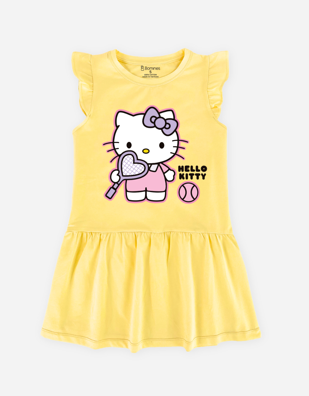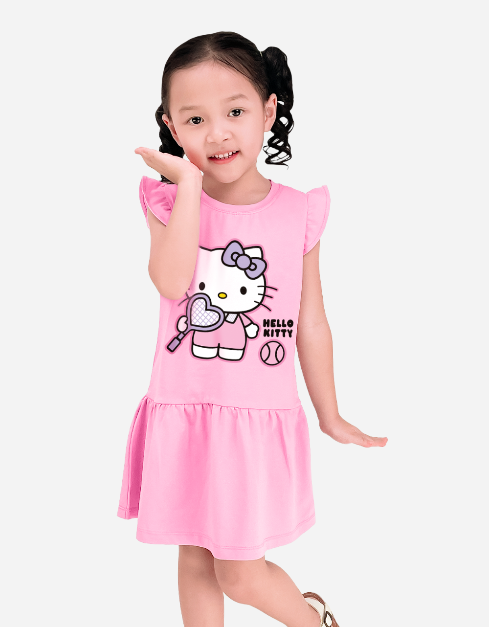 😘 🍩 Váy bé gái họa tiết Hello Kitty màu sắc tươi tắn giúp bé nổi bật, tự tin hơn. Thiết kế tay cánh tiên điệu đà đáng yêu.