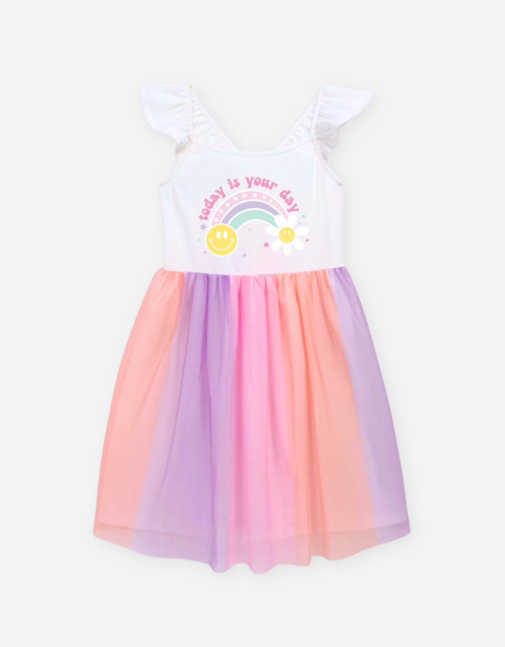 👸 Váy phối lưới hoạt tiết cầu vồng ngọt ngào, chân váy phối voan lưới 7 màu điệu đà.
