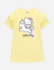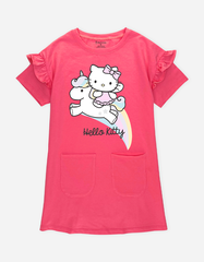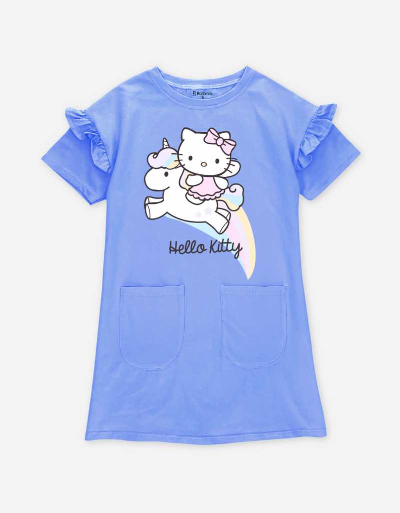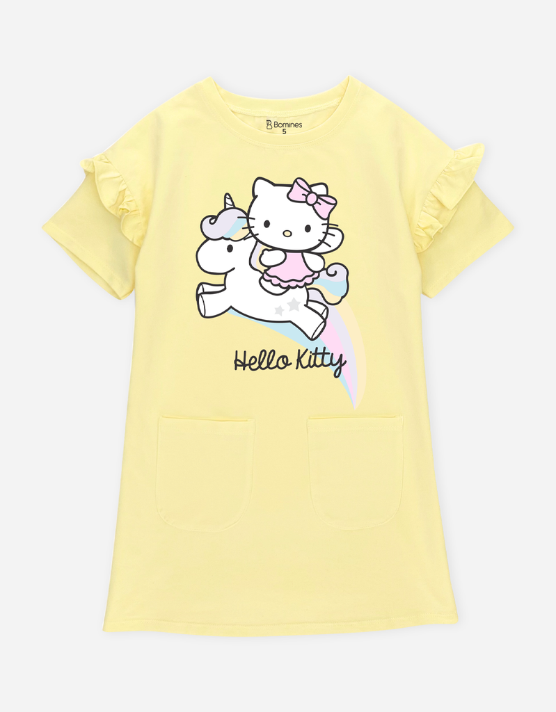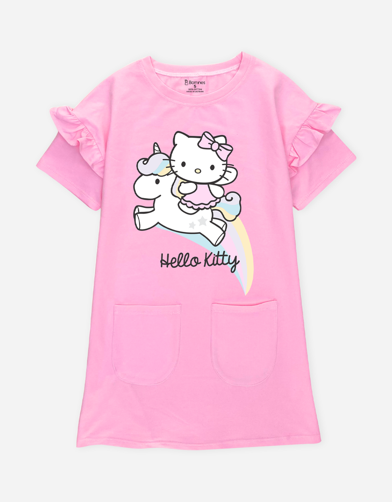 Váy bé gái họa tiết Hello Kitty màu sắc tươi tắn giúp bé nổi bật, tự tin hơn.