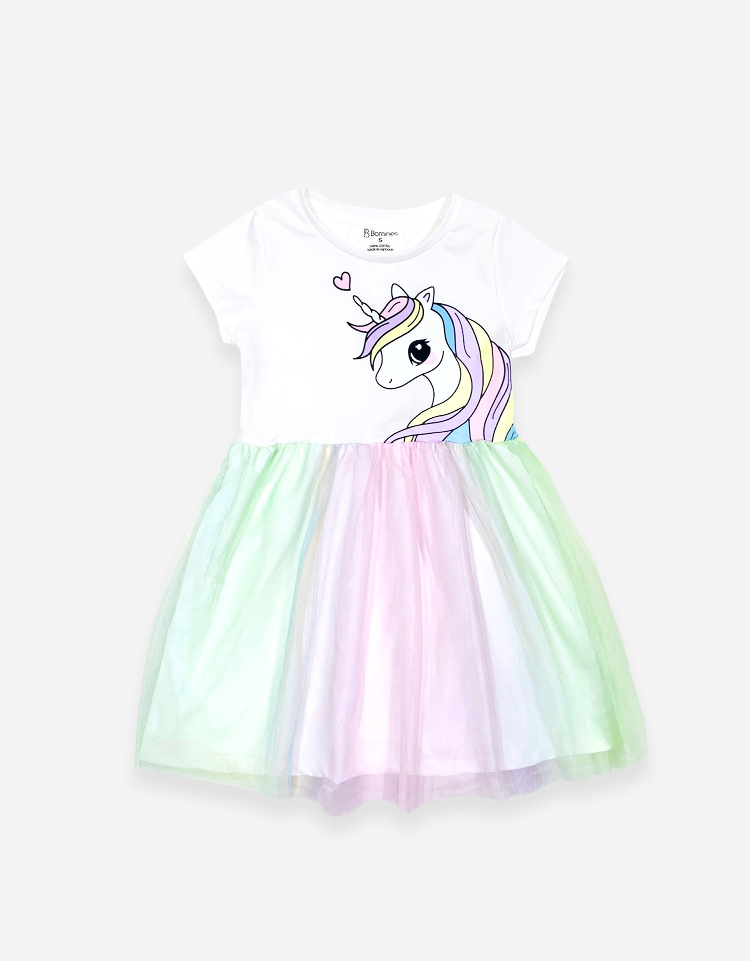 Váy bé gái phối lưới họa tiết Unicorn bé gái nào cũng yêu thích. Chất liệu cotton thoáng mát, phần tùng lưới bên trong có lớp lót cotton thấm hút mồ hôi.